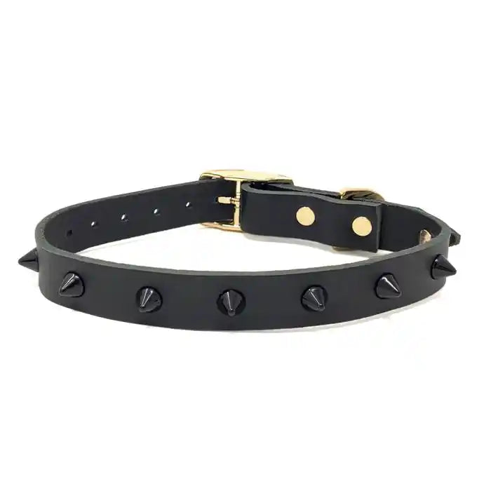 Smooth Spike Leather Dog Collar – Black Noir