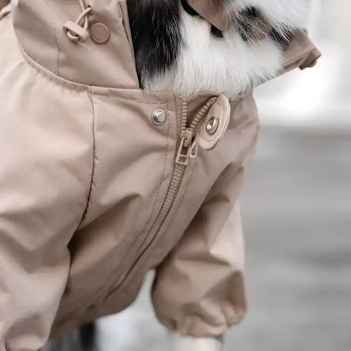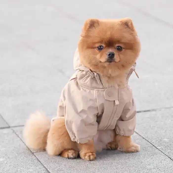 This Beige Dog Rain Coat Is Made With Water-resistant And Protective Lannel Nylon Fabric For An Extremely Breathable Wear (bonus For Those With Sensitive Skin!). The Stretchy Sleeve Ends And Bottom Protects Your Pup From Splashes And The Hood Is Made Adjustable For An Easy Fit. It Is Also Packable Into A Pouch That Is Attached To The Liner Of The Coat!