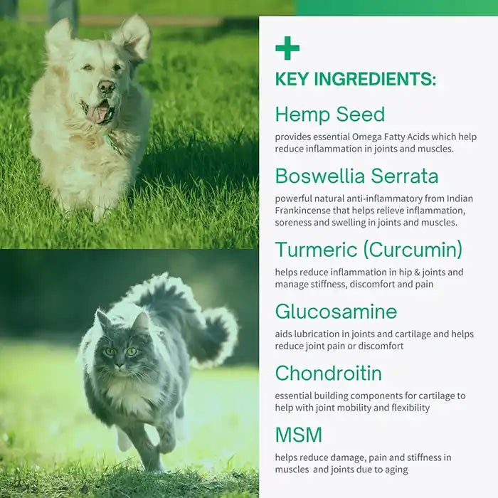 The SensoVet Hip & Joint Advanced Hemp Chews For Dogs & Cats Is Specifically Formulated With A Potent Blend Of Nutrients That Promote The Development Of Sturdy Joint Cartilage, Leading To Improved Mobility And Optimal Joint Health. The Formula Has Been Developed By Veterinarians And Harnesses The Power Of Key Ingredients Like Glucosamine, MSM, Turmeric, And Chondroitin, All Known For Their Ability To Support Joint Wellness. The Addition Of Hemp Seed Powder And Oil Provides A Rich Source Of Omega Fatty Acids That Can Slow Down The Aging Process And Decrease Inflammation. These Chews Are Made With Natural Flavors And Natural Preservatives. They Are Grain, Corn, And Soy-free Making Them The Healthy Choice For Your Precious Companion.