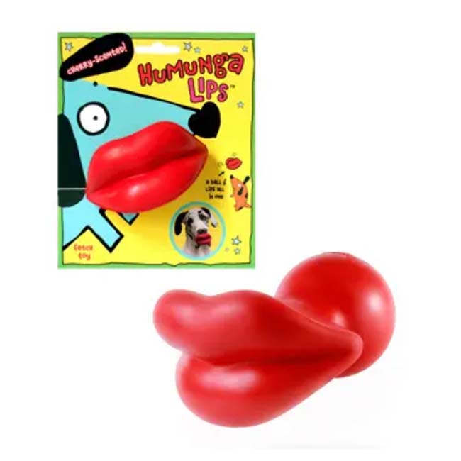 Must-have, High-quality Fetch Toy That Gives Your Dog Giant Cartoon Lips When He Has The Ball In His Mouth! Kiss Your Other Toys Goodbye! Remember Those Wacky Wax Lips You Used To Play With As A Kid? Now, Fifi Can Get In On The Fun…  Except This Kisser Is A Cherry-scented (yum!) Rubber Fetch Toy.  It’s A Ball On One End And Gigantic, Luscious Lips On The Other. When Your Pooch Picks Up The Ball In A Game Of Fetch, Your “Angelina Jolie Wannabe” Can Now Be As Pouty And Pursed As Her Celebrity Crush! Woof!