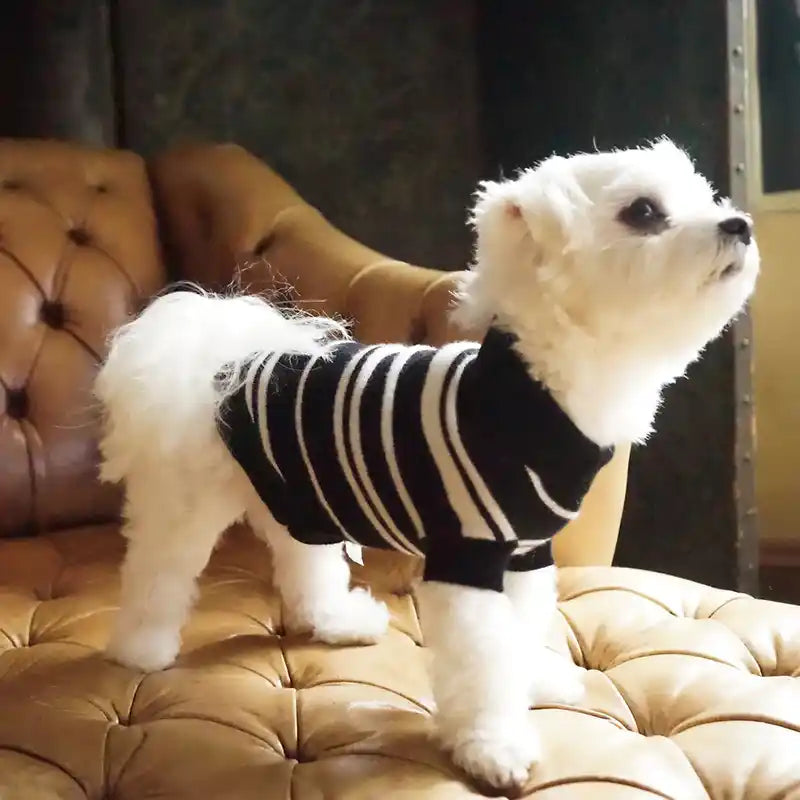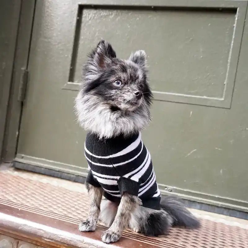 The Lupo Cashmere Sweater Is Timeless With A Black And White Striped Pattern. It Is Made From The Lightest 12 Gauge Weight Cashmere, Making This Feather Light Dog Sweater The Perfect Versatile Piece For A Chilly Day Outside Or Cozy Day At Home.