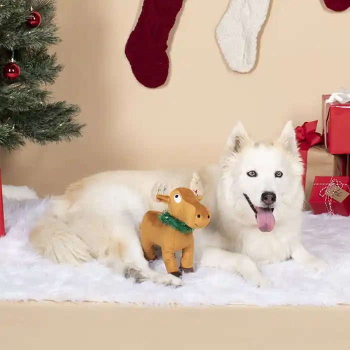 Merry Chris-Moose! This Adorable Toy Is Made With A Super Loud Squeaker And Stuffed With Fluff, Your Pup Will Be Sure To Have A Jolly Good Time With This Festive Friend.