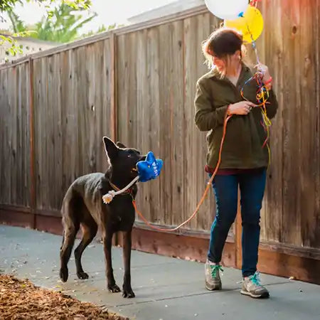 You Can’t paw-sibly Have A Party Without Balloons. This Balloon Dog Toy Comes With A T-shirt Rope Pawfect For Tugging And A Giant Squeaker In The Middle To Make Play Time Extra Fun!