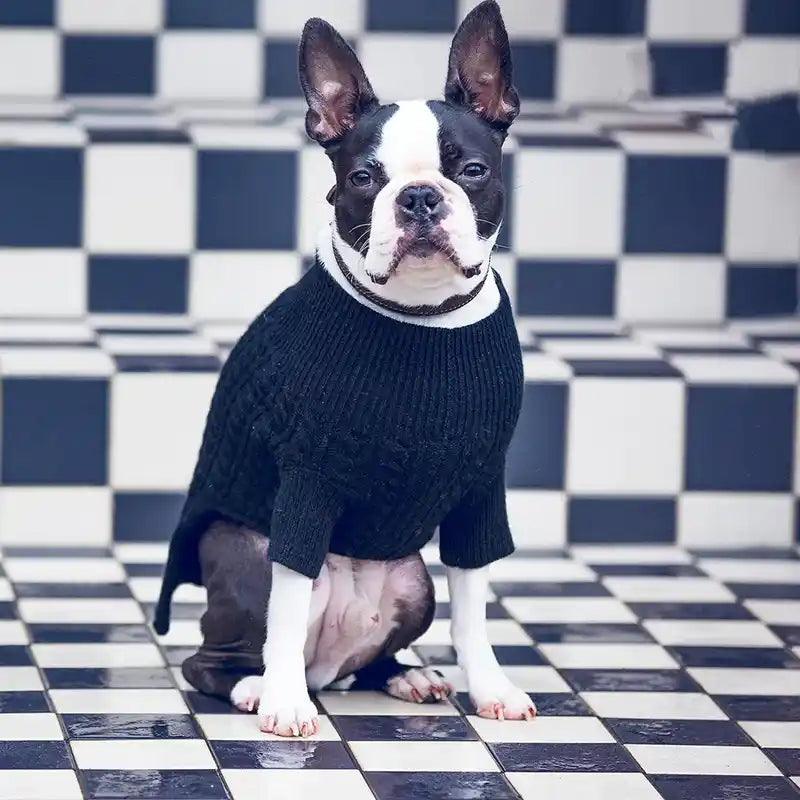 The Rufus Cashmere Turtleneck Pet Sweater – Black